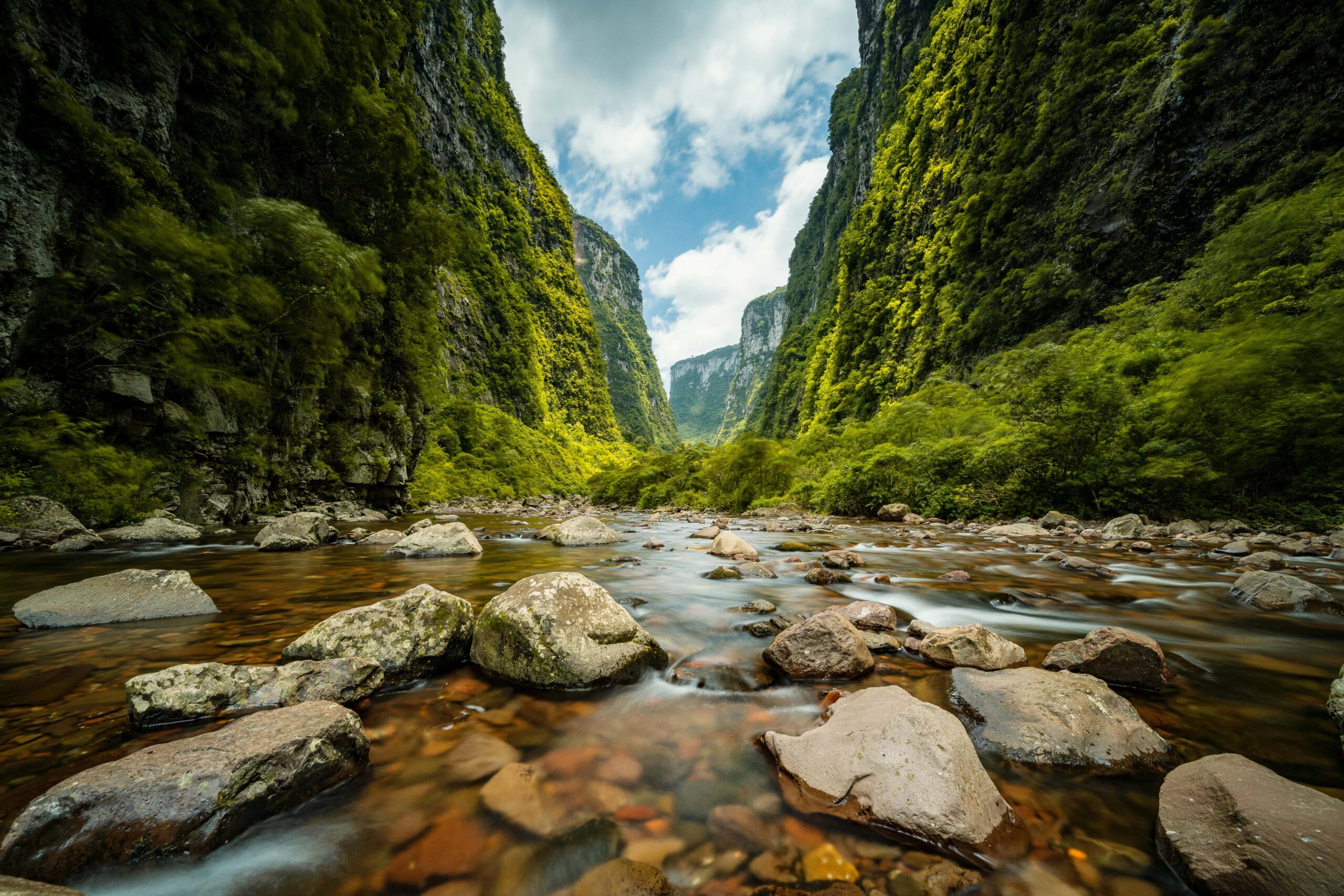 Prepare-se para uma experiência única em meio à grandiosidade dos cânions. Com aproximadamente 14 km de percurso entre ida e volta, a Trilha do Rio do Boi serpenteia pelas margens do rio que lhe dá nome, levando você a paisagens que impressionam a cada passo. Cercado por formações rochosas monumentais e uma flora exuberante, este caminho no coração do Parque Nacional de Cambará do Sul é uma verdadeira imersão na natureza.